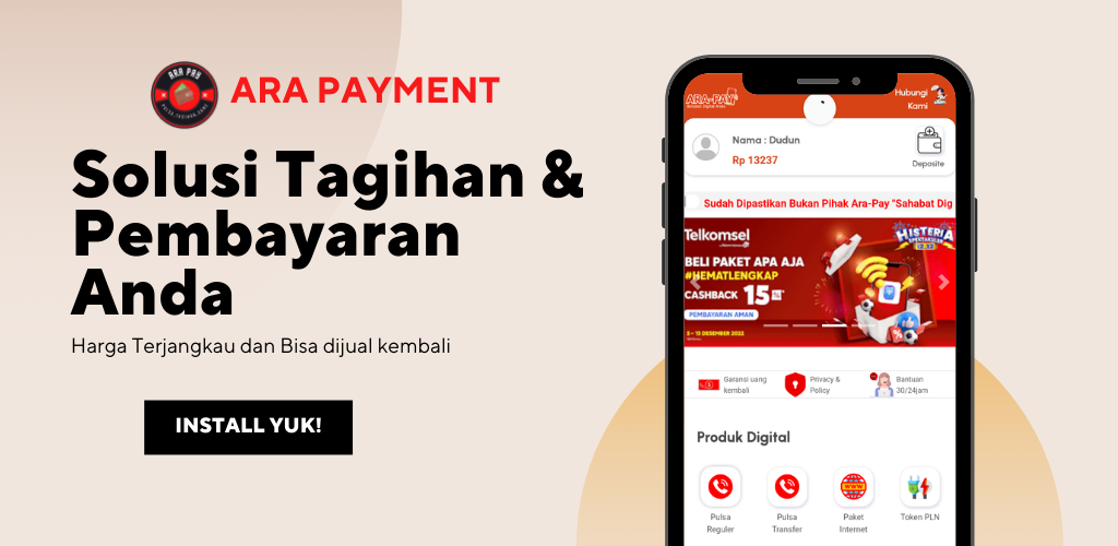Aplikasi semua kebutuhan belanja dan pembayaran anda ada disini,selain harganya sangat terjangkau,ada banyak produk yang bisa anda jual kembali disini. Arapay solusi atas semua pembayaran dan tagihan anda.