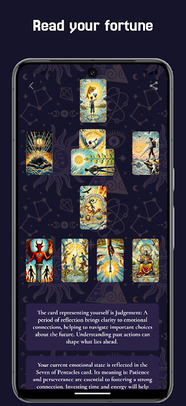 さらに、Arcane Tarot は包括的なタロット リファレンス ツールとしても機能します。ユーザーは、すべてのタロット カードの分類されたリストを参照して、カードの意味、関連する星座、要素、その他の神秘的な属性を含む詳細な説明を調べることができます。タロットの初心者でも、ベテランの読者でも、Arcane Tarot はカードの知恵とつながるための豊かで魅力的な体験を提供します。