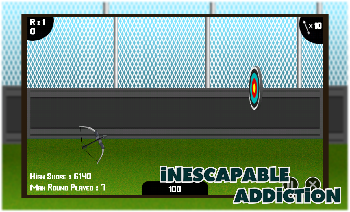 The main concept of this game is to touch and move your finger to aim the target marker. Release your finger to fire the arrows. Calm yourself, relax, take a deep breath and aim your arrow to shoot the bull’s eye/center to score 50 points and win an extra arrow.
