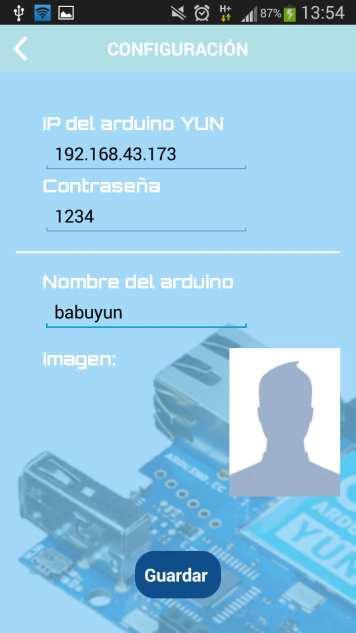 Una vez el sistema esté instalado en su casa la aplicación es muy sencilla de configurar. Solo necesitas introducir en la aplicación la IP en la que se encuentra instalada el arduino además de una contraseña de seguridad.