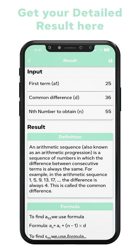 この電卓を使用すると、数学の問題をすぐに解くことができます。数学を学ぶあらゆる生徒や教師にとって簡単にできるようにしました。この電卓を使用すると、ワンクリックで最初の n の合計を計算できます。さらに、このアプリは方程式の n 番目の項を見つけるのにも役立ちます。空のフィールドに必要な値を入力し、計算ボタンをクリックするだけで、等差数列の詳細な解が得られます。きっと気に入っていただけると思います。
