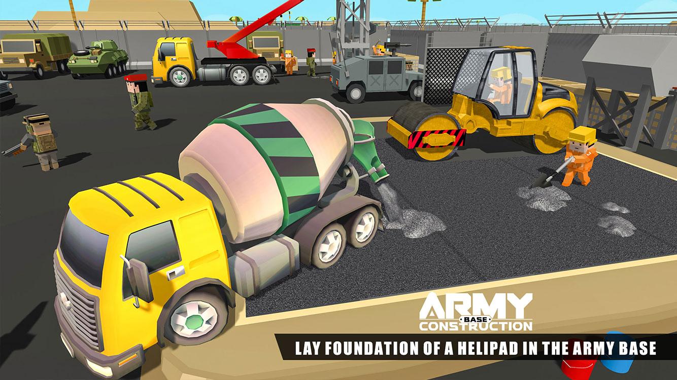 あなたは軍隊連隊のキャンプタウンで新しく、あなたは軍の基地建設現場で建築建設の仕事に本当のビルダーとして雇われています。したがって、建築シミュレータサイトでインフラストラクチャを設計する必要があります。軍の救助任務に参加し、ヘリコプターの追跡と軍用タンクの現実的な接触を得て、敵に対する攻撃の準備をしている。建設請負業者として重い掘削機クレーンの掘削機を運転し、軍隊連隊のためのすばらしい陸軍ベースキャンプを建設するという課題に取り組む。ブロッククラフト3D軍基地建設現場のゲームでベースキャンプ塗装のための道路ローラーと画家を使用してください。建設シミュレーションゲームであなたのスキルをテストし、泥道道の都市建設業者としての重い機械の運転技術を活用してください。あなたは新しい都市で都市建築の巨人になることができ、あなたの建設仕事を実行しながら建設トラックシムを運転することができます。このゲームの主な目的は、軍基地建設シミュレーションゲームで複数のものを構築することです。重い建設機械を操作し、軍基地のフロンティア戦場を準備しなければなりません。ヘリコプター追跡のための安全壁、ヘリコプター滑走路、軍用救助隊および軍救助任務のための軍庫を建設する。急いで、このゲームをプレイして、都市建設の工芸ビルディングブロックのすべての材料を入手してください。