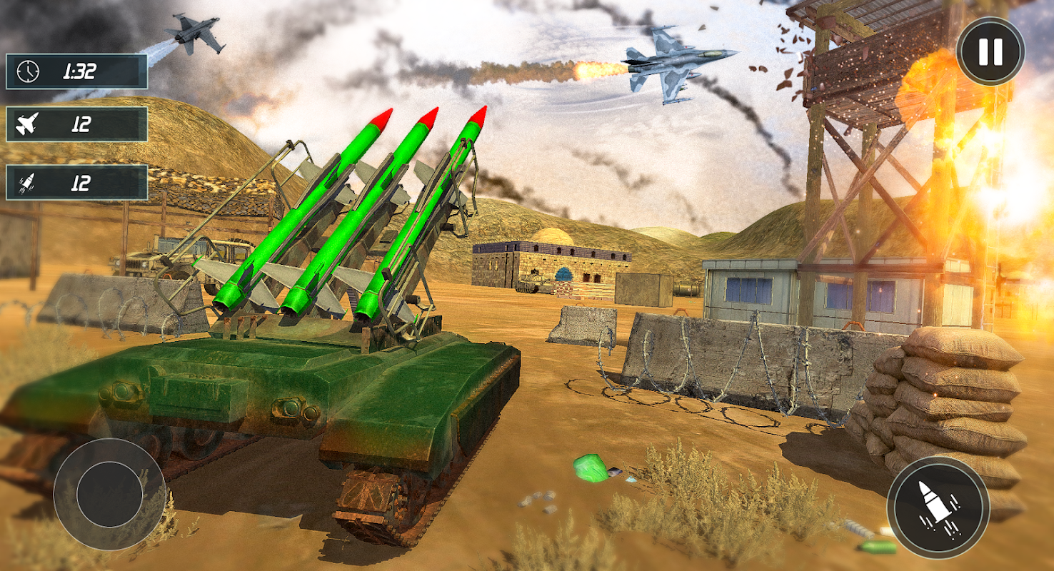この陸軍ミサイル攻撃シミュレーターでは、ロケット攻撃を行うためのさまざまな軍用トラックがあります。秘密の任務を持つ米軍兵士としてこのミサイルシューティングゲームをプレイしてください。さまざまなマルチレンジミサイルから選択してターゲットをマークし、この陸軍トラックの射撃戦闘で勝利を収めましょう。陸軍ミサイルゲームの最新の誘導ミサイルで敵の戦闘機を破壊します。戦闘ゲームの熟練したパイロットを制御するために、敵の飛行ドローン、ヘリコプター、高度なウォージェットを目指します。ロードされたロケットランチャーでノンストップアクションを見せて、砂漠やジャングルで米軍になるために必要なことを体験してください。戦車や航空機の戦いであなたの国を守るのに十分勇気を持ってください。ミサイルトラックシミュレーターゲームは、ジェットスカイファイターと弾道ミサイルの戦闘と衝突レベルをもたらします。