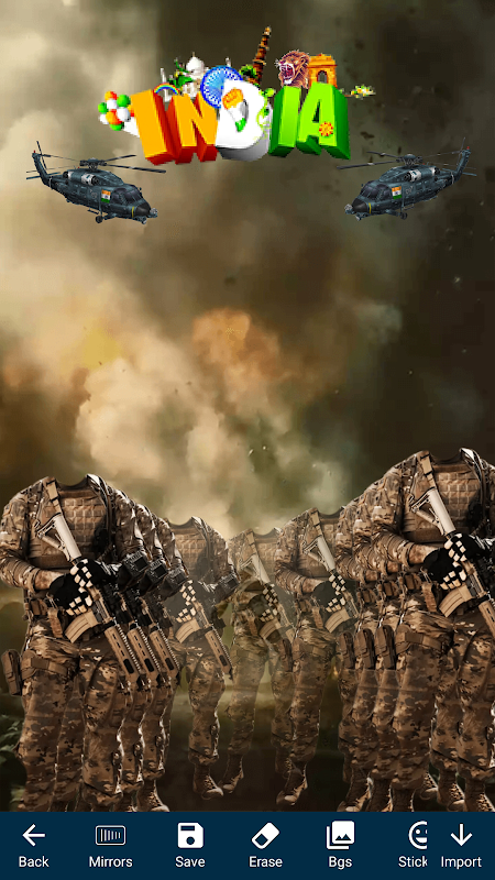Army Suite Military Commando は、究極の軍事コマンド体験を提供するように設計された強力な写真編集アプリです。幅広い機能とツールを備えたこのアプリを使用すると、写真を軍事をテーマにした見事な傑作に変換できます。写真にリアルで魅力的な外観を与えるために特別に厳選されたさまざまな背景、フレーム、スーツ、ステッカーなどで群衆から目立ちます。
