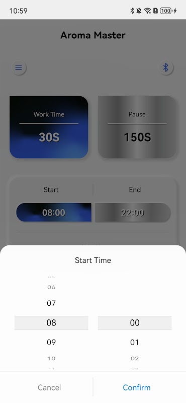Aroma Master は、フレグランス デバイスを制御するために特別に設計された Bluetooth アプリです。このアプリを使用すると、ユーザーは香りの強さの制御、タイマーの設定、その他の個人設定など、フレグランス デバイスを簡単に接続して調整し、理想的なフレグランス体験を生み出すことができます。このアプリは、フレグランスデバイスをリモート管理するためのシンプルで直感的なインターフェイスを提供し、いつでもどこでも快適な環境を作り出すことができます。
