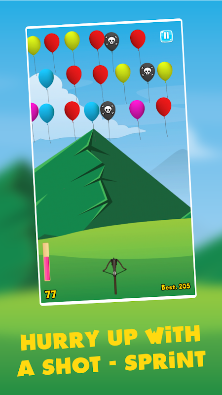 画面をタップしてクロスボウから矢を1本射るだけです。矢は何本でも射ることができ、制限はありません。ただし、黒い風船には注意してください。