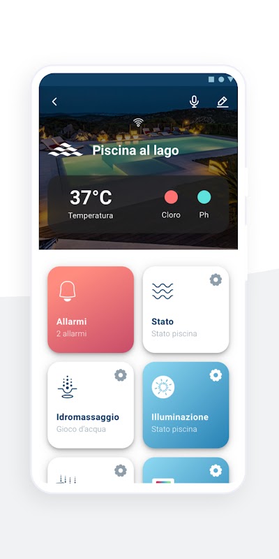 水の値と温度はリアルタイムで検出されます。主な要因(pH、消毒)は、水の結晶を透明に保つために制御ユニットによって制御されます。機器のオンとオフを管理し、自動設定でイベントカレンダーを定義できます。即時インターフェースにより、RGBライトを管理およびプログラムし、設定をカスタマイズできます。その種のユニークなライトは、プレイリストの音楽のリズムに合わせることができます。
