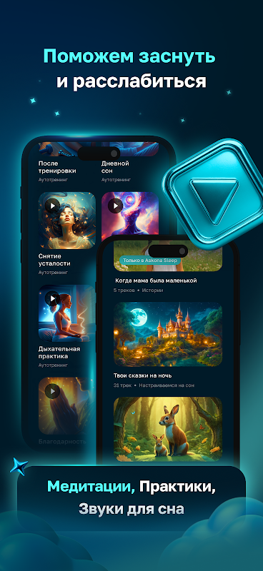 このアプリには、緊張を和らげ、眠りにつくための瞑想、呼吸法、ストレス解消テクニックに特化したセクションがあります。ここでは、就寝前のリラクゼーション、忙しい一日の後の回復、短時間の「リブート」練習など、毎日使えるオーディオセッションを見つけることができます。すべての瞑想は専門家の協力を得て開発されており、さまざまなトレーニングレベルに適しています。これらのテクニックを定期的に使用することで、睡眠を正常化し、コルチゾールレベルを下げ、メンタルヘルスを維持するのに役立ちます。