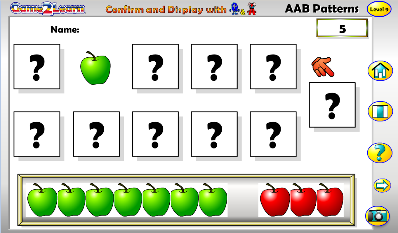 Assessing AAB Patterns with Q&A also includes a number of 'just for fun' brain games that reward children for completing each assessment task while breaking the continuous assessment cycle and its associated anxiety.