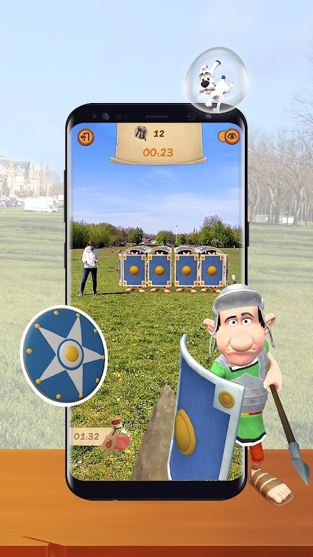ジオロケーションと拡張現実を使用して、プレイヤーはコミックストリップからキャラクターを収集し、邪魔になるローマ軍団に挑戦することで、オベリックスとドッグマティックスを支援する必要があります。