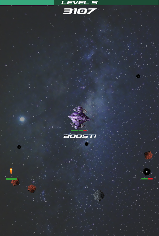 Defend against one single wave of asteroids!