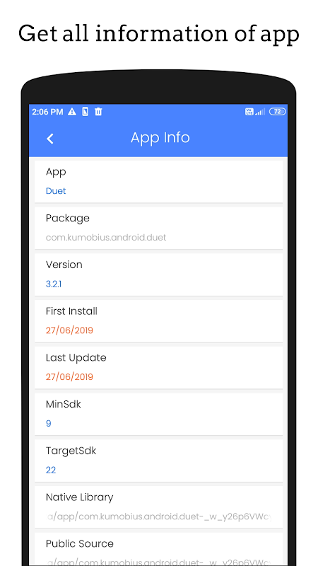 ➺ Get follwing inforamtion of app: