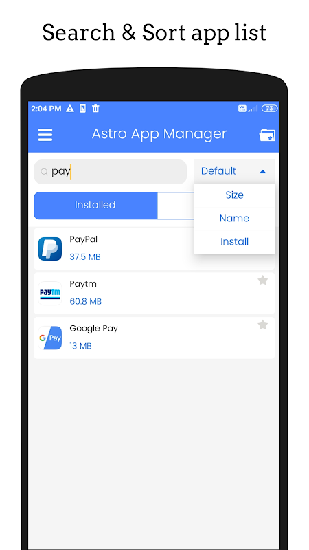 ➟ Sorting list according to app's size, alphabet & install date.