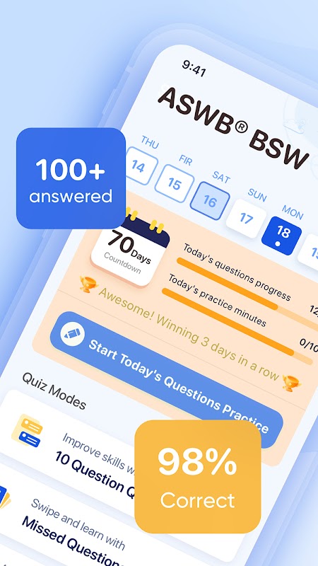 現在、このアプリを使用してソーシャルワーク学士 (BSW) 試験の準備をすることができます。