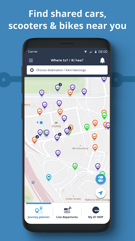 AT Mobileを使用すると、オークランド内を簡単に移動できます。 ATメトロバス、電車、フェリーサービスを横断する旅の計画と追跡、または自転車や徒歩での移動に役立ちます。頻繁に通勤する人、たまに旅行する人、オークランドの探検家が初めての人など、25万人を超える他のユーザーと一緒に、オークランドを簡単に旅しましょう。
