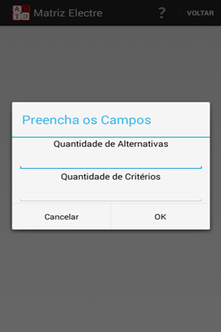 O usuário deverá inserir o nome do problema, quantidade de alternativas e critérios, a partir desses dados o ATD mostrará uma matriz de decisão que deverá ser preenchida pelo usuário, ao clicar no botão "enviar dados" o ATD apresentará uma tela com a ordem das alternativas recomendadas.