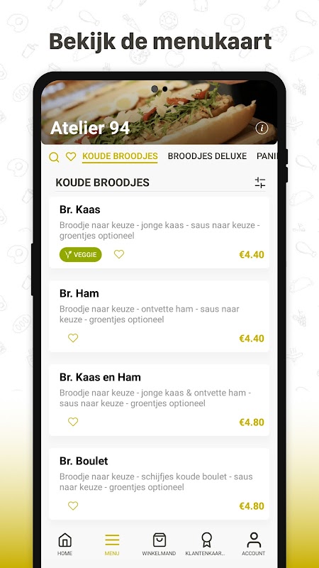Ateljee 94 アプリを使用して、お気に入りの料理を簡単に注文してください。