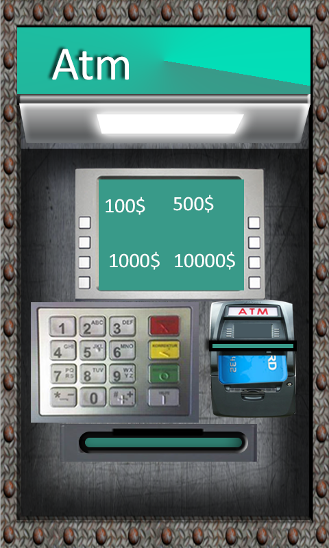 atmのアカウントを作成するには、atmのカードとatmのピンコードatmのシミュレータ、atmのモバイル。まず、atm銀行をクリックして、あなたの個人名を入力するよう依頼し、あなたのATMカードのPINコードを作成します。第二に戻るとATMをクリックしてあなたの高速現金のためにお金を引き出すここであなたはモバイルアプリケーションでatmの特定のATMマシンにあなたのカードを入力し、特定のATMのPINコードを入力し、残高照会や現金などのオプションから選択する必要があります。現金にする特定の金額をさらに入力します。次に、最後にクリックしてatmの現金と金の特定の金額をatmの現金マネーシミュレーターで取得します。