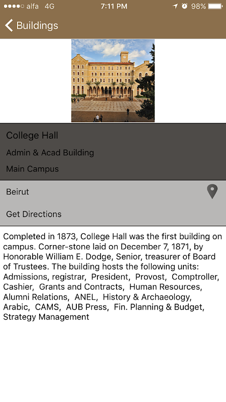 アプリを使用して、あなたはまた、キャンパスのアップデートに関する通知を受信するディレクトリのリストを検索し、それらのホスト部局とともに、建物はキャンパス内に配置されている場所を確認するためにGPSとマップを使用することができます。