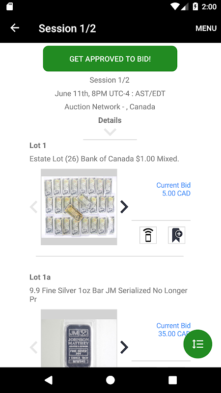 - Browsing of auction catalogs with photos, descriptions and easy use absentee bidding