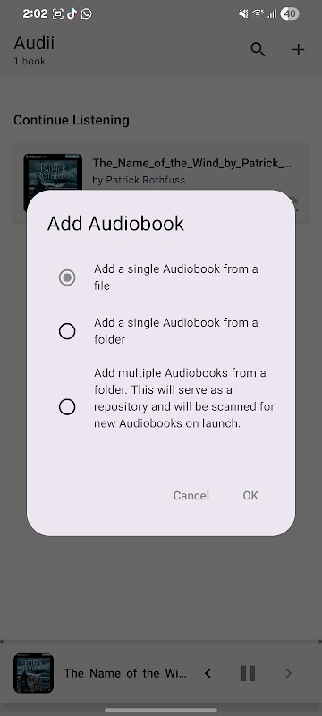 ライブラリを整理:オーディオブックを個別のファイルまたはフォルダ単位で簡単に追加できます。