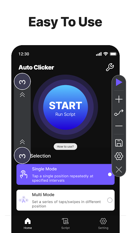 オート クリッカー自動タップを使用して、ニーズに合わせてスクリプトを変更します。タップまたはクリックの速度、間隔、継続時間、シーケンスを調整して、スムーズで効率的な自動化エクスペリエンスを作成します。