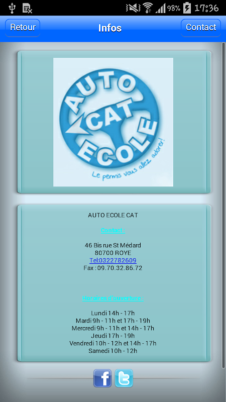 アプリケーション「猫のドライビングスクールでは「あなたのドライビングスクール(価格、レビュー...)のすべての事実を見るだけでなく、プッシュ通知の形で最新のニュースやチラシを取得する機能を提供しています。