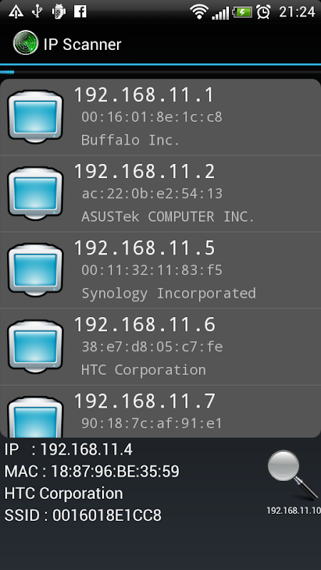 このアプリは、ネットワークのIPアドレスをスキャンします