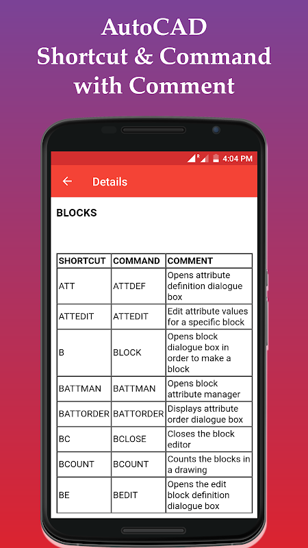 we had create that AutoCAD Shortcut keys where it to use and explaining with some examples and new command were updating on this app.So please be patient with us.