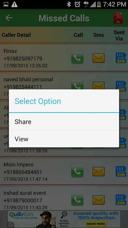 Send the number of your incoming calls that were missed by you to a third party.(so that he/she can call them back for you)