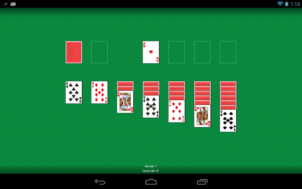 Taking a standard 52-card deck of playing cards (without Jokers) one upturned card is dealt on the left of the playing area, then six downturned cards (from left to right).