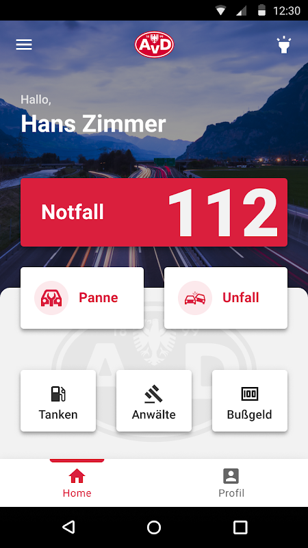 AvD故障支援アプリの使用はドイツ国内でサポートされています。現在、すべての機能を海外で保証することはできません。