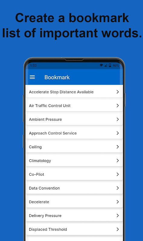 - Over 10000+ word dictionary of aviation terms.