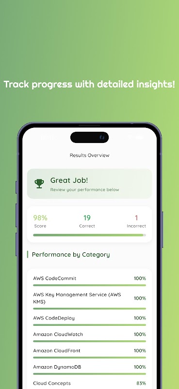 リアルな試験シミュレーターでスキルを磨き、詳細な分析機能で進捗状況を追跡し、専門家が作成したガイドで AWS 上でアプリケーションのコーディング、デプロイ、デバッグを学習できます。いつでもどこでも学習できます。