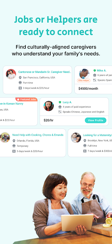 希望の言語で育児や高齢者介護のヘルパーを見つけてください