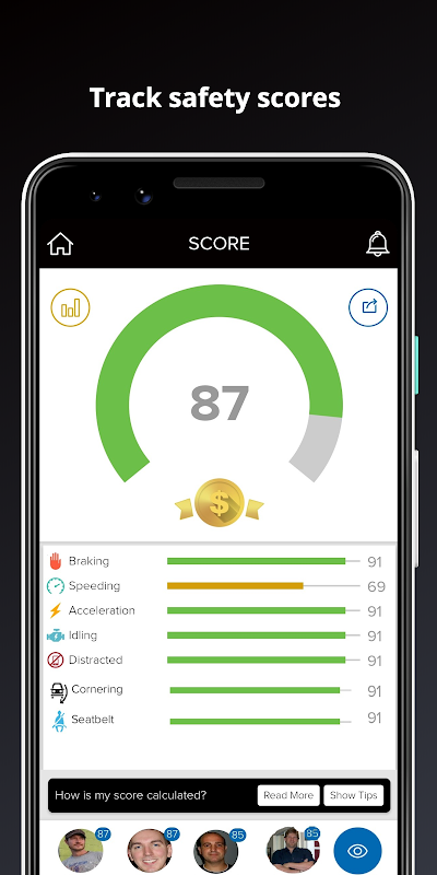 • 安全性スコアを追跡します。ドライバーは、安全性スコアを監視し、お互いがどのように重なり合っているかを確認し、より安全で効率的なドライバーになるよう指導します。スーパーバイザーは、同じスコアとリーダーボードを表示して、ドライバーがどのようにハンドルを握り、どのような運転行動をラップトップ、携帯電話、タブレットから行う必要があるかを確認できます。