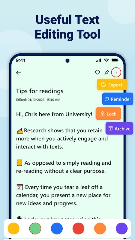 このデジタル ノートには、基本的な編集機能に加えて、パワー ユーザーに最適な高度な機能も含まれています。 メモを書いたり、タグやフォルダーでメモを整理したり、アーカイブで特定のメモを非表示にしたり、削除したメモをごみ箱から復元したりすることもできます。 長期的なプロジェクトに取り組んでいる場合でも、メモや簡単な考えを書き留めている場合でも、このデジタル ノートには必要なものがすべて揃っています。