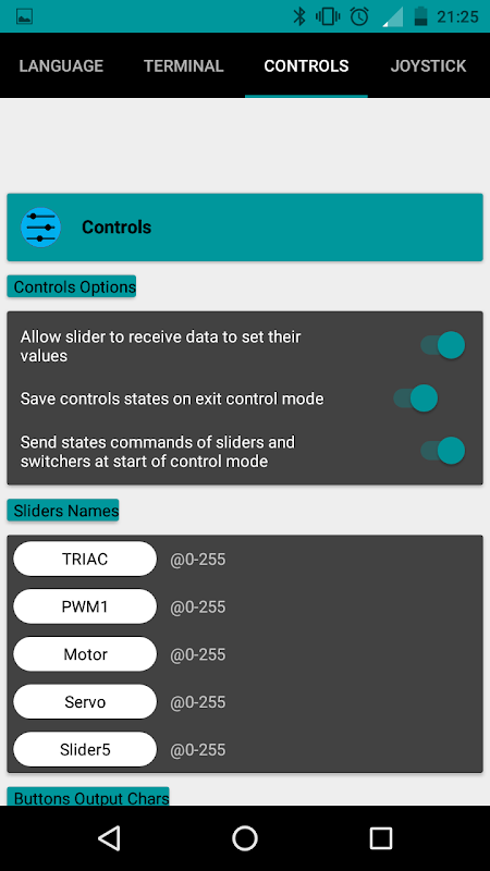 3° Utilize um dos modos: Controle[Joystick] , Painel de controle [switchers, buttons e sliders] ou Terminal [Troca de Mensagens]