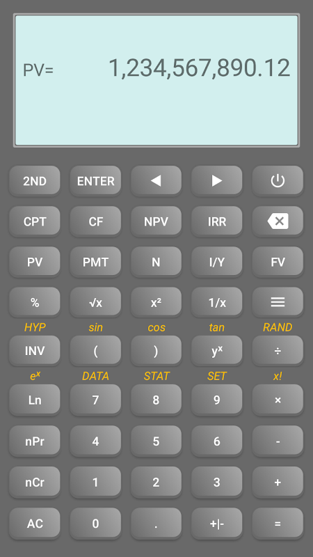 BA電卓/金融電卓は、貨幣の時間価値、正味現在価値、回帰、予測、順列と組み合わせを含む金融、統計モデリングでプレミアム機能を提供しています。