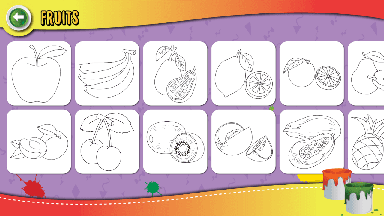 3. フルーツぬりえで、楽しくフルーツの名前を覚えましょう。美しい音声ガイド付きで、お子様が様々なフルーツの種類を認識し、学ぶことができます。