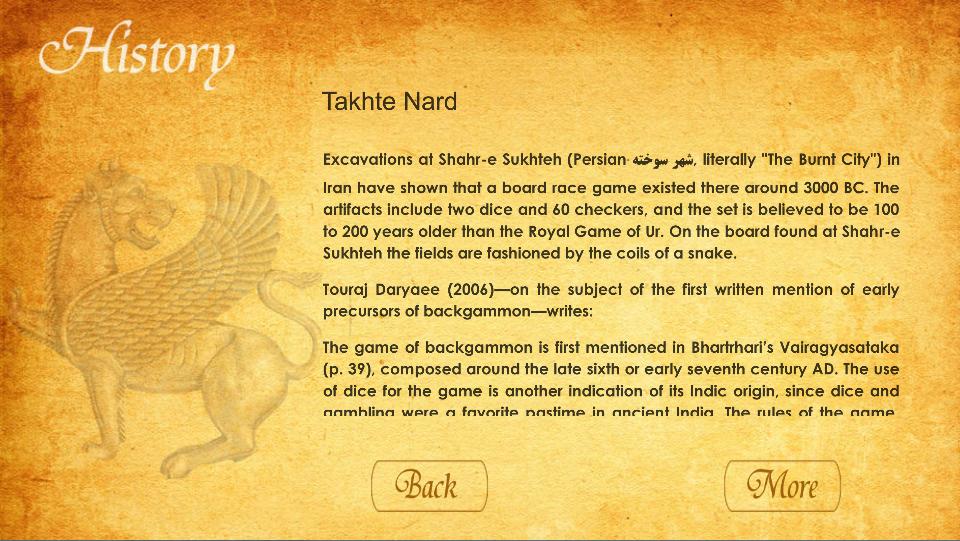 Backgammon(ペルシャ語:تختهنرد -Takhte Nard)は、古代ペルシャのボードゲームです。