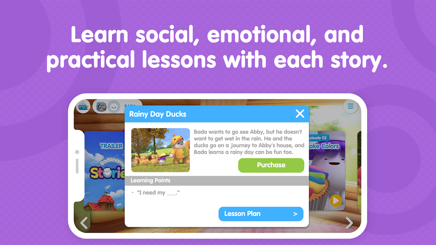 Young learners will learn English like never before with Bada and friends in each of the emotionally engaging episodes! Our high-quality animated content brings the Bada Read series to life and teaches common phrases, story keywords, and sight words, in addition to so much more!
