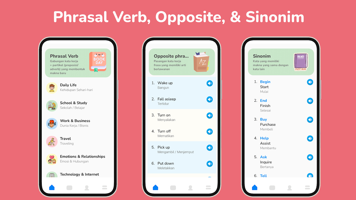 この英語のアプリケーションでは、日常の英会話でよく使用される数千の単語が文章に含まれており、自宅で簡単に英語を学ぶことができます。