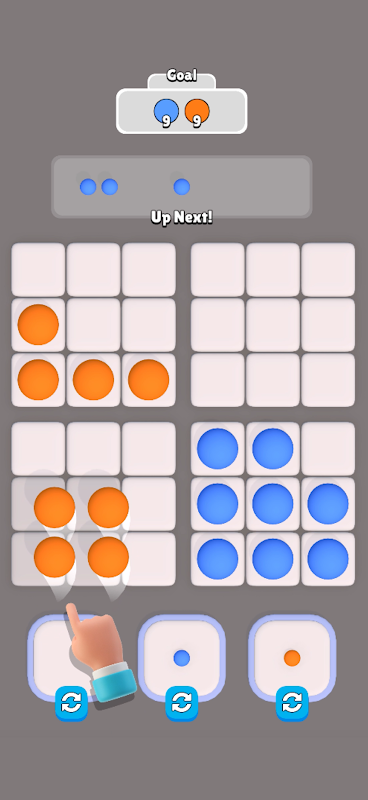 3x3 のグリッドにボールの形を配置し、色を合わせて完璧な正方形を完成させましょう。