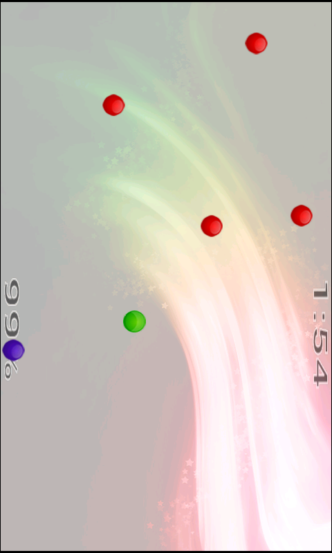 It's about you avoiding contact with red balls but continue to follow the green ball to get more time for the game to proceed. It's about you being a blue ball and gravity only applying to you. The rest of the colored balls float freely in zero gravity. The game is even more challenging with real physics you would expect, bump too hard against any other ball and it is bound to respond by change in speed and bouncing back hard. The complete randomness that surrounds you is another challenge you will have to develop for. A unique kind of approach with randomness all around you and the rest is up to you. See how far and lucky you can get
