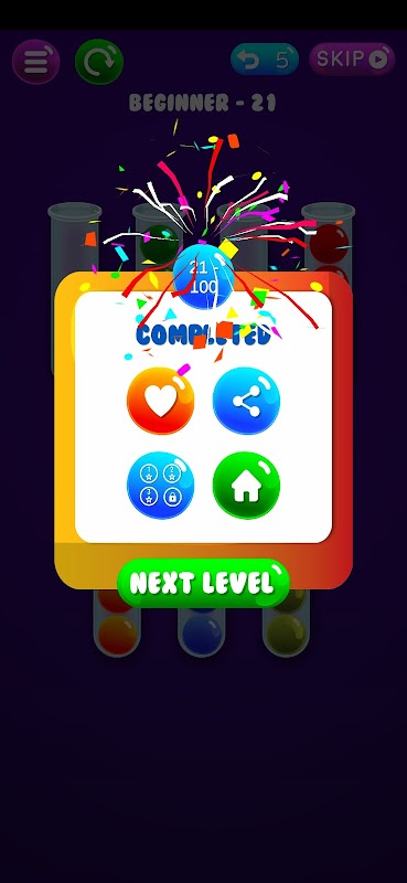 Ball sorting is a very addictive game of sorting the bubble balls with different level of hardness. All the ball are very social so you need to sort them with their color family.