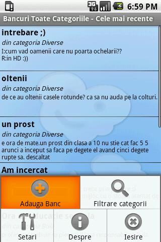 Cu ajutorul acestei aplicatii puteti vizualiza, adauga, vota si trimite bancurile.