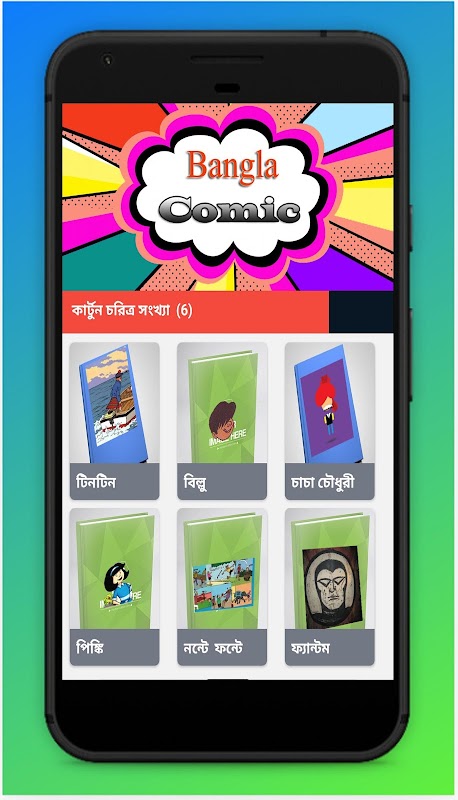 “বাংলা কমিক” অ্যাপটি সব বয়সের লোকদের কাছেই জনপ্রিয় হবে এই আশা করাটা ভূল হবে না কারণ এতে আছে আমাদের সেই ছোট বেলায় পড়া কার্টুন ক্যারেক্টার গুল যা কিনা আমাদের ফিরিয়ে নিবে ২০-৩০ বছর আগের সময়টাতে যখন কমিক্স পড়াটাই ছিল আমাদের ছেলেবেলার নেশা গুলার একটি । প্রাণের সব চরিত্র গুলোই এই এপ্সটি রাখার চেষ্টা করা হয়েছে । পাশাপাশি অন্যও কার্টুন ক্যারেক্টার পাওয়া যাবে।