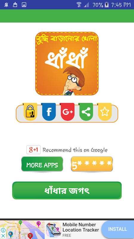 আজকালছোটবড়অনেকেইধাধাপড়তেবাপ্রিয়জনকেধাঁধাঁধরেগোলকধাঁধায়ফেলতেপছন্দকরে、আবারকেউকেউবন্ধুবান্ধবদেরমাঝেমজারধাঁধাবলেওনিজেকেহিরোবানিয়েফেলে。 বাজারেঅনেকধরনেরবাংলাধাঁধাঁবাধাধারবইকিনতেপাওয়াযায়、কিন্তুমজারব্যাপারহচ্ছেআমাদেরএইবাংলাধাঁধাঅ্যাপএরমতএকটিওমজারধাধারবইখুঁজেপাওয়াযাবেনা。
