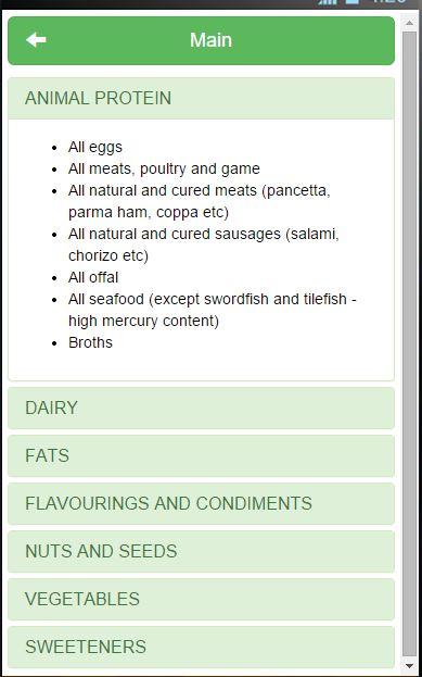 Use this to view which foods are allowed and which are not.